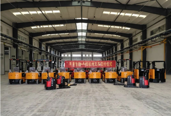 杭叉集團去年中標某省會城市軌道交通建設(shè)項目,近日,杭叉給該項目交付了數(shù)十臺電動叉車和托盤搬運車。